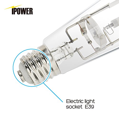 The iPower GLBULBH1000 is a pressure sodium grow light bulb crafted with professional hydroponic use in mind. It boasts a transparent glass design that visibly shows the internal arc tube, supporting its robust illumination capabilities. The bulb has a classic elongated shape typical of HPS bulbs and an E39 base that fits a wide range of fixtures designed for high-wattage lighting. Its quality glass and construction assure durability, though the transparent finish requires careful handling to avoid damage.